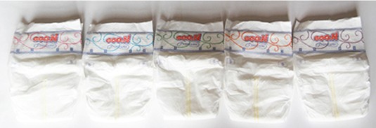 1、將尿布平放在評估板上,并觀察產品材料。