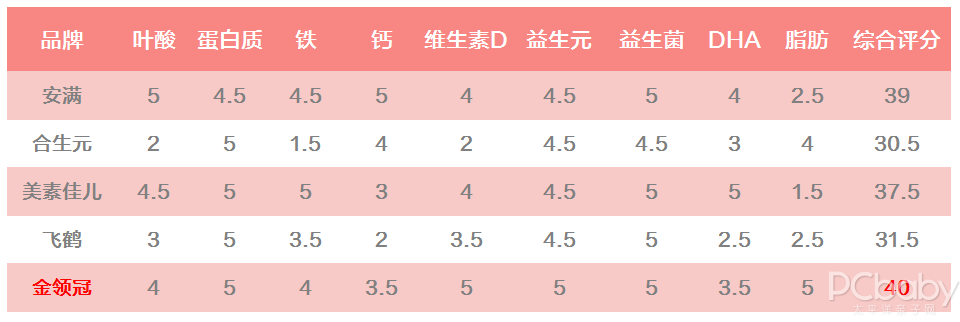根據綜合營養,小編推薦兩款:金領冠和安滿。但個人體質不同,需要補充的營養也因人而異,建議孕媽們根據結合自身營養需求選擇合適的孕期營養補充。