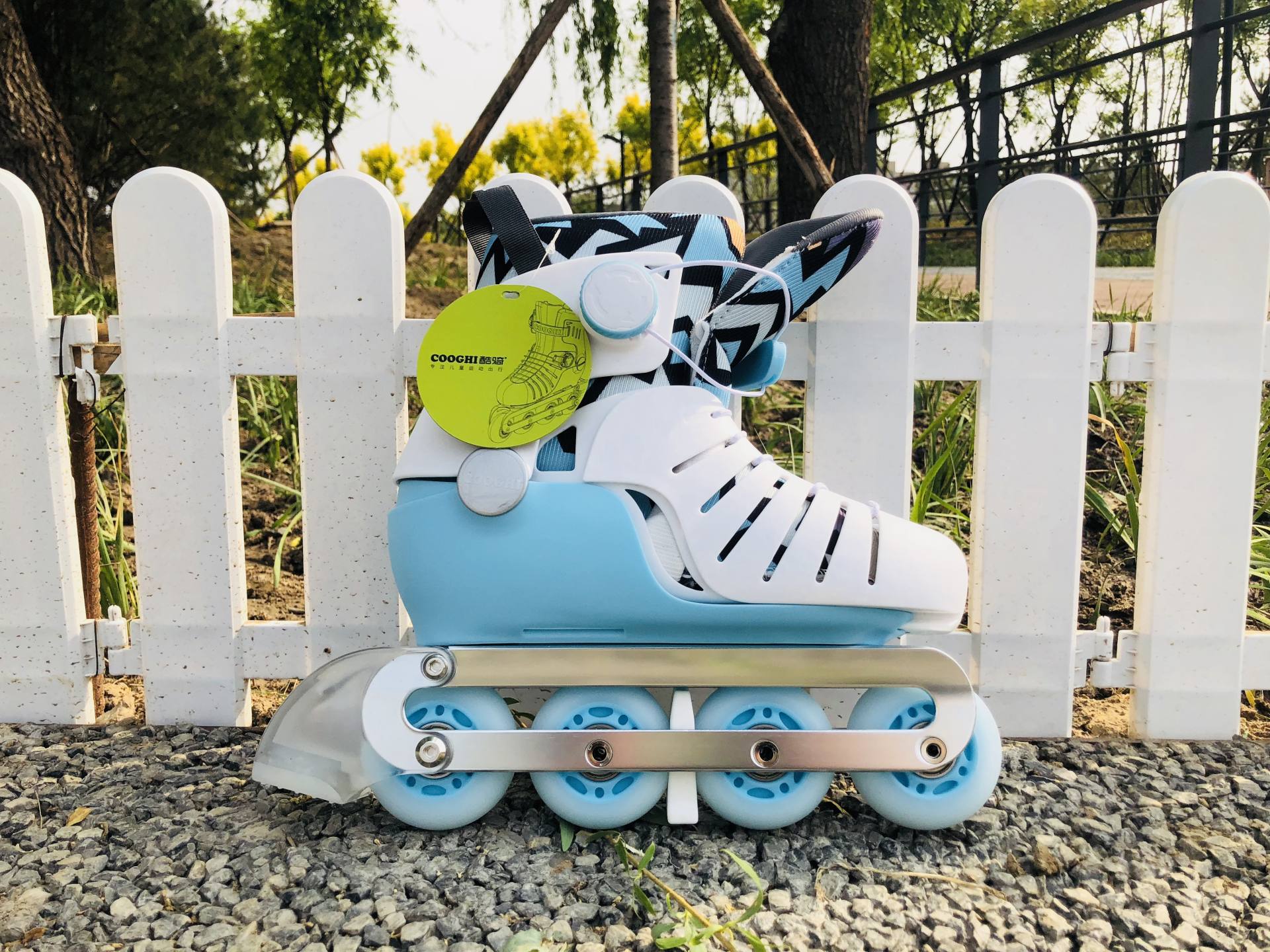 在選擇滑輪鞋上我還是很慎重的,畢竟關(guān)乎著小伙子的安全問題。大到產(chǎn)品品牌、質(zhì)量是否過硬,小到外觀、鞋殼、鞋架、滾輪,再到是否有護(hù)具等等細(xì)節(jié)。在網(wǎng)上看了很多,也對比了口碑較好的幾個品牌,最終入手了COOGHI酷騎兒童輪滑鞋。