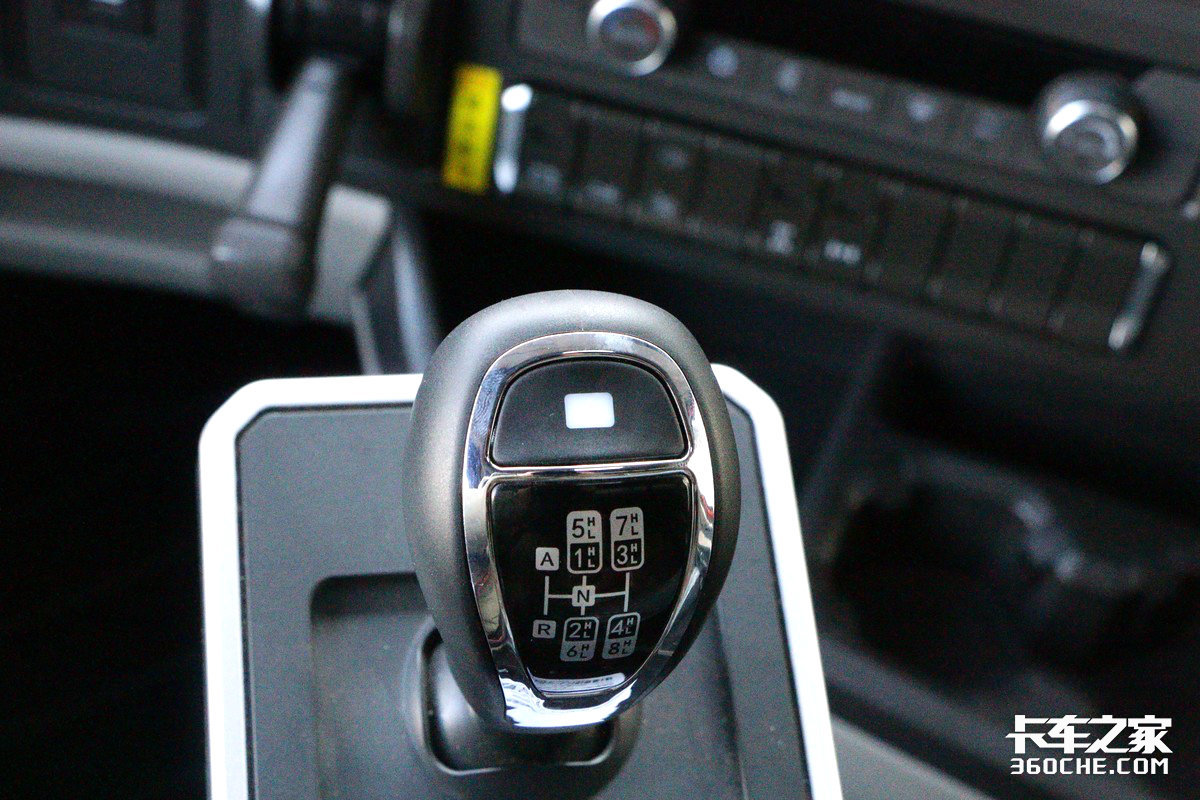 值得一提的是,豪沃MAX采用了重汽第七代無憂換擋AMT變速箱設計,擋桿結合了扶手設計,非常取巧,除了可以手動控制加減擋位之外,還可以通過下方的按鍵,實時改變車輛的動力輸出,以達到更理想的平均油耗。