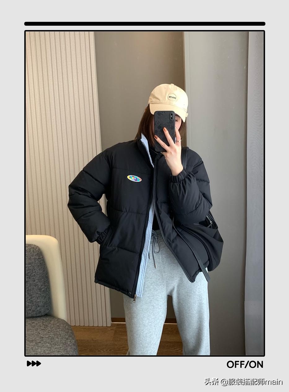小個子或者微胖的女生選棉服時盡量選擇短款,搭運動褲時可以避免顯矮和顯胖。再戴頂