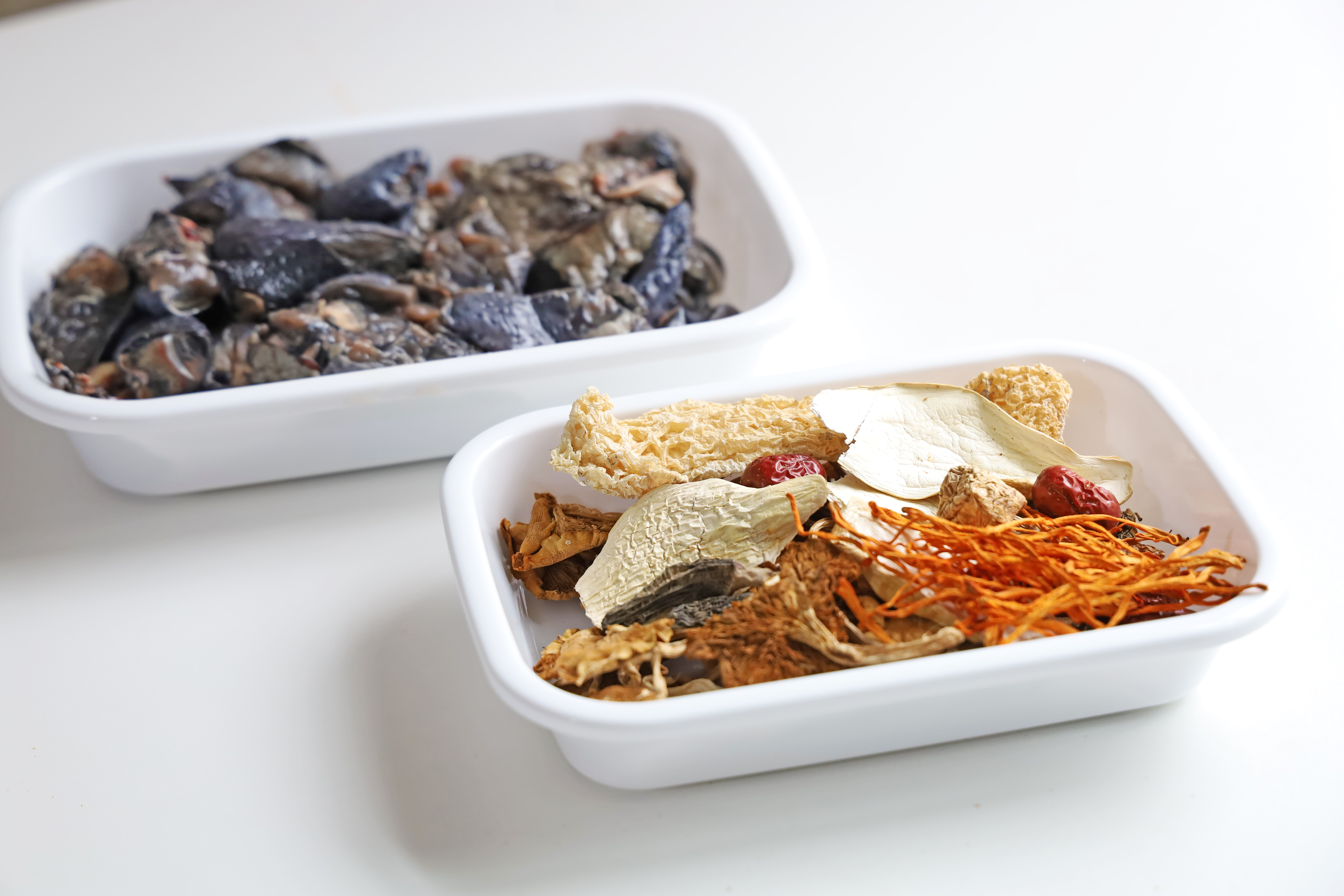 考慮到烏雞的雞皮脂肪含量十分高,拿來煮湯時(shí)可以去掉雞皮,或者喝湯時(shí)撇開湯面上的浮油。一般煲這個(gè)湯會(huì)放桂圓、紅棗、枸杞,但是桂圓燥熱,我改用了菌菇。此湯入口清甜,可補(bǔ)中益氣、養(yǎng)血安神,尤其適合脾胃虛弱、氣血不足、睡眠不好的人。