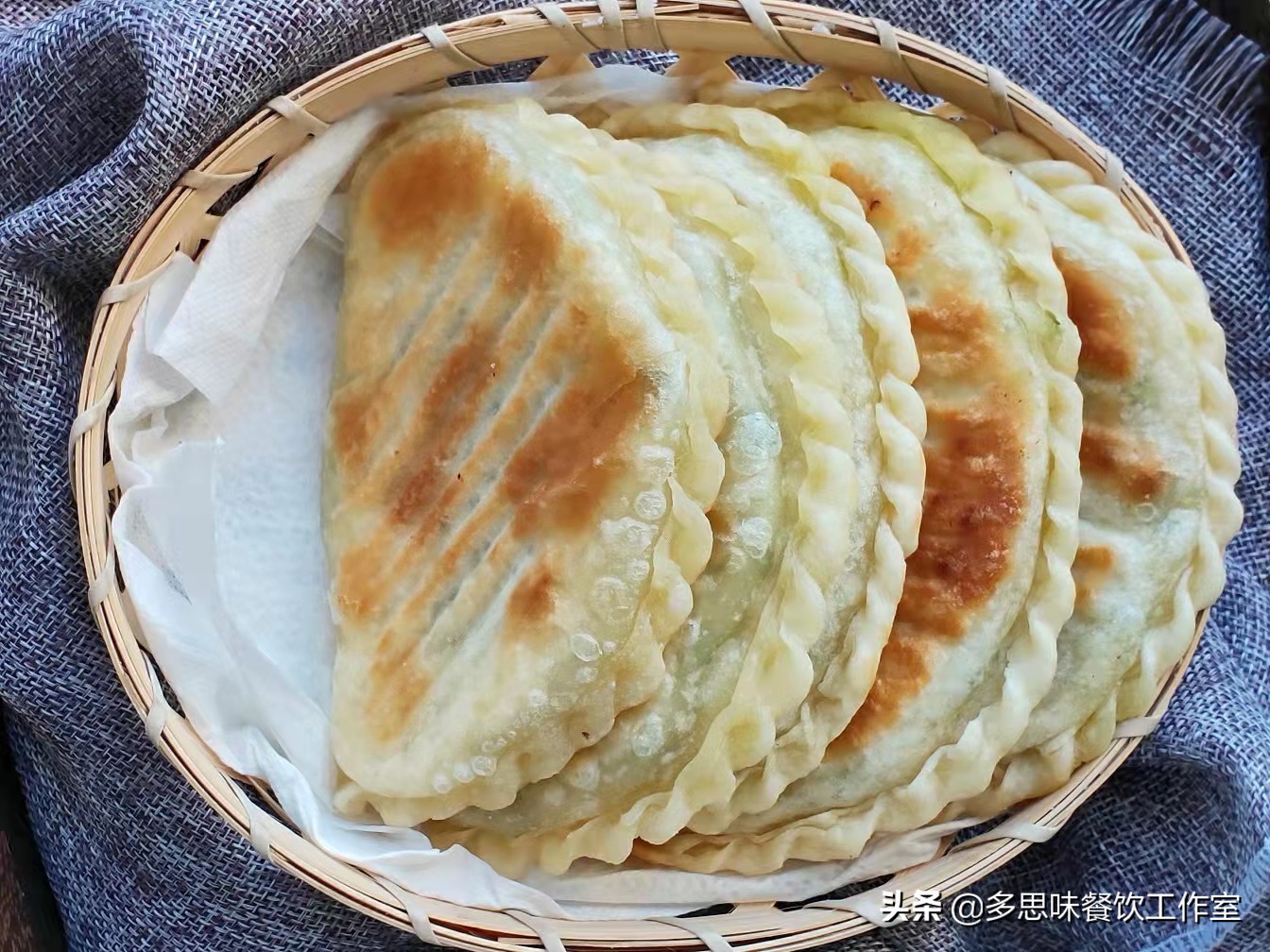 5包好的餅輕輕壓變,鍋中多留一些有,將其放入,兩面煎制金黃,切鼓起全熟即可出鍋(切勿用大火哈)