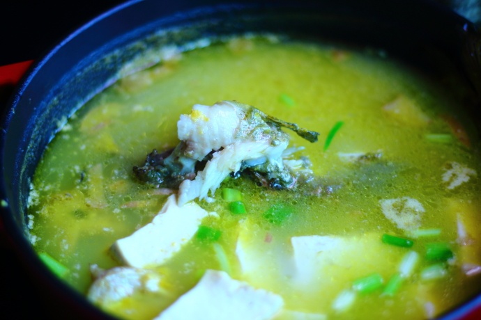 嘎魚3條、柴鍋豆腐1塊、生姜1小塊、食用油少許、鹽適量、香蔥1根、清水1.5L左右