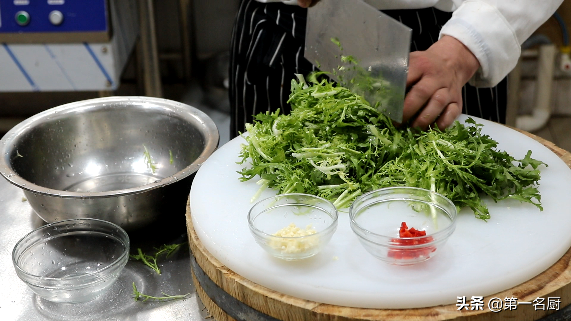 再把苦菊切成小段,控干水分,放入盆中,下面開始拌苦菊。