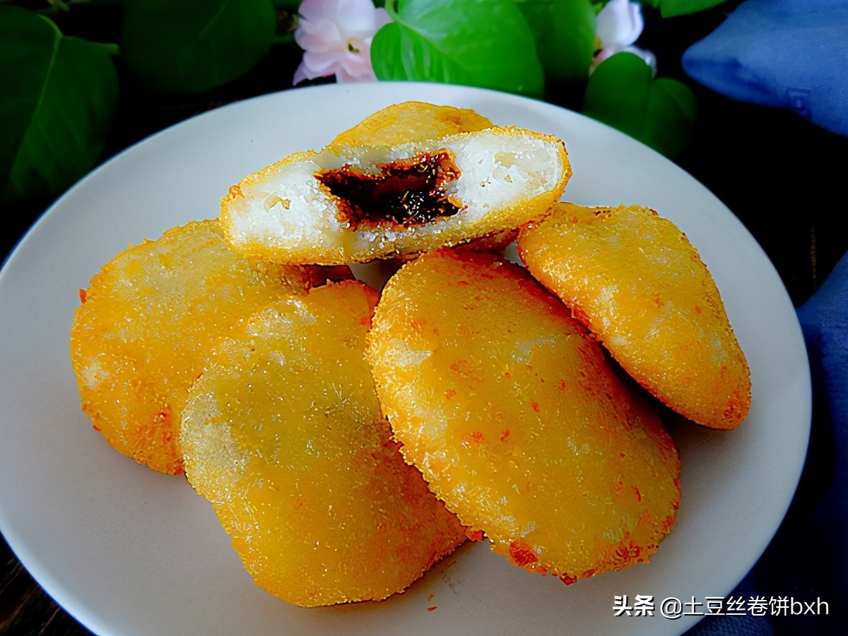 山藥用蒸鍋大火蒸10分鐘取出,這樣蒸一下的目的是為了和面的時候,不要讓山藥汁傷到皮膚。山藥加水2:1的比例攪打成糊。把糯米粉倒入山藥糊里,和成一個軟硬適中的面團。揪下一塊面團,比乒乓球大一點,直接壓扁做成碗狀,放入紅糖椰蓉餡。收口包好;收口后直接用手拍扁成一厘米厚的餅,放到面包糠上,整個沾滿面包糠;蘸好面包糠的小餅用手輕輕揉拍,靜置幾分鐘,油5分熱的時候就放入炸糕生胚,中火炸,不停地翻動,看到炸糕浮起就輕輕按下去,兩面金黃變色又鼓起就好嘍。