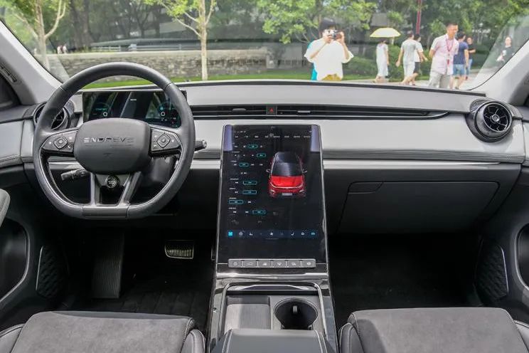 內飾設計風格屬于簡潔類型,車內幾何紋理飾板點綴后,質感還不錯。全液晶儀表盤、大尺寸中控顯示屏等配置在提升科技感的同時,還融入了智能車機系統,并支持OTA升級能力。諸如運動風格的座椅、氛圍燈、人臉識別、記憶泊車等功能也都有配備。動力上,該車搭載了一套由發動機+電動機組成的增程式動力系統,綜合續航里程也超過了1000公里。