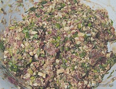 2. 肉餡攪打時要沿一個方向攪打至上勁。
