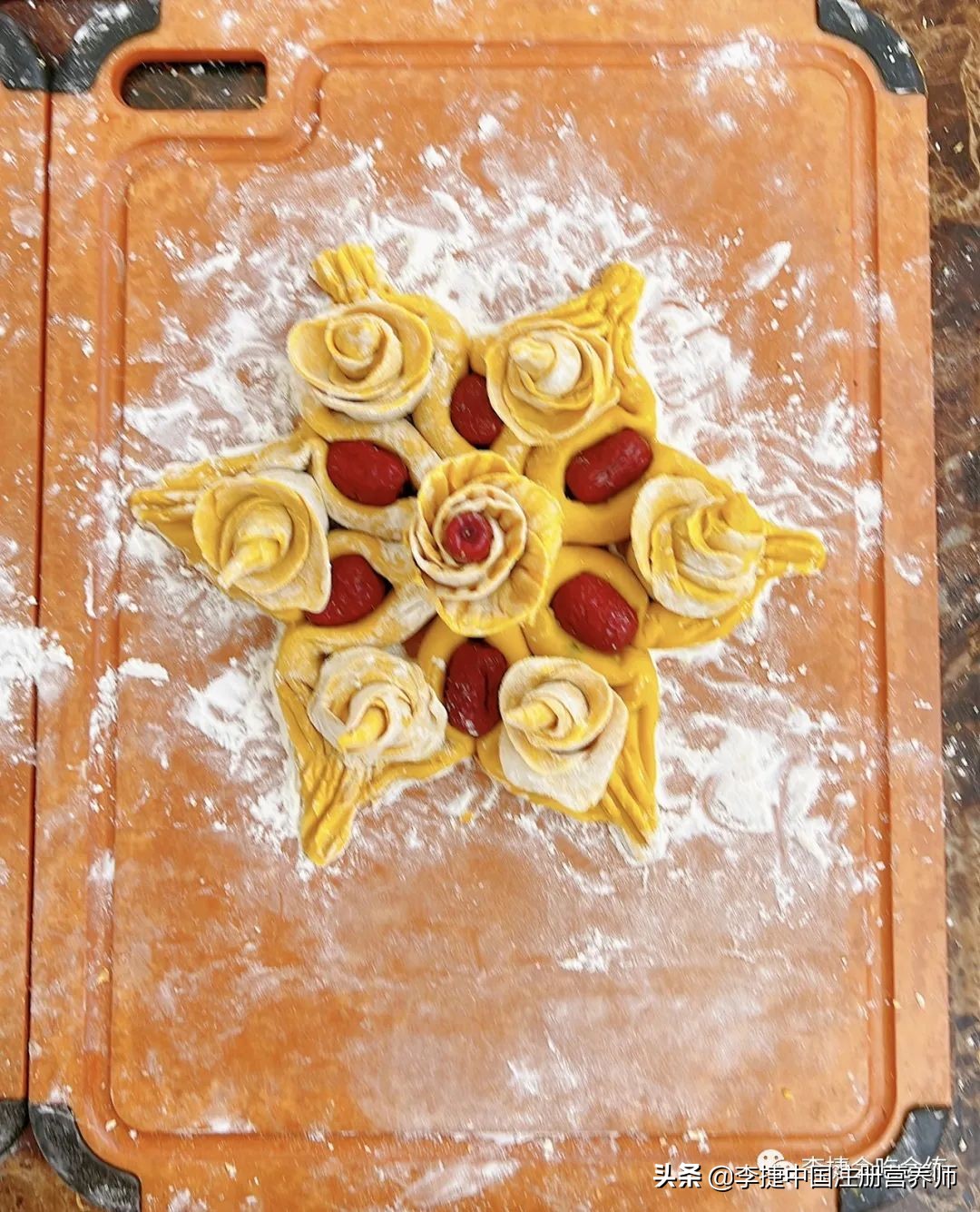 我做了七朵玫瑰花組合的花式饅頭,分享給大家。