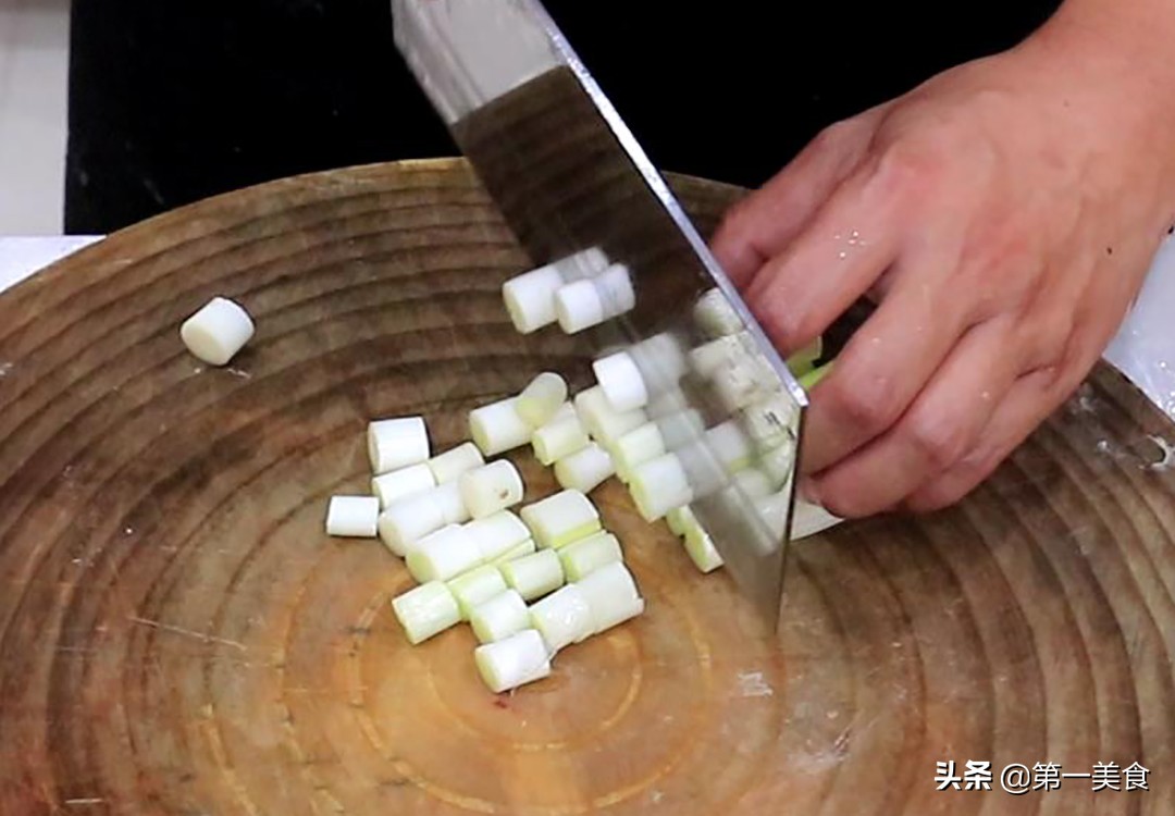 鍋內留少許底油,把蔥段放進去爆炒一下,爆出蔥香味以后,倒出來備用。