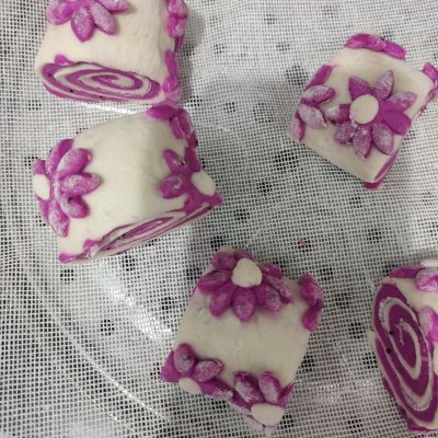 5、取紅色和白色各三分之一,用模具壓成小花,白色小花忘記拍圖了