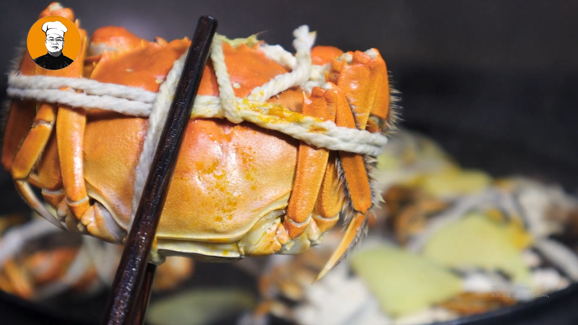 7、水開后,上面放一個篦子,再擺上姜片,把大閘蟹肚臍朝下,放在姜片上面,蓋上蓋子蒸一分鐘。時間到時,把大閘蟹翻個面,倒過來黃就不會流出來,上面再放上姜片,蓋上鍋蓋再蒸十分鐘。時間到,夾出來就可以開吃了