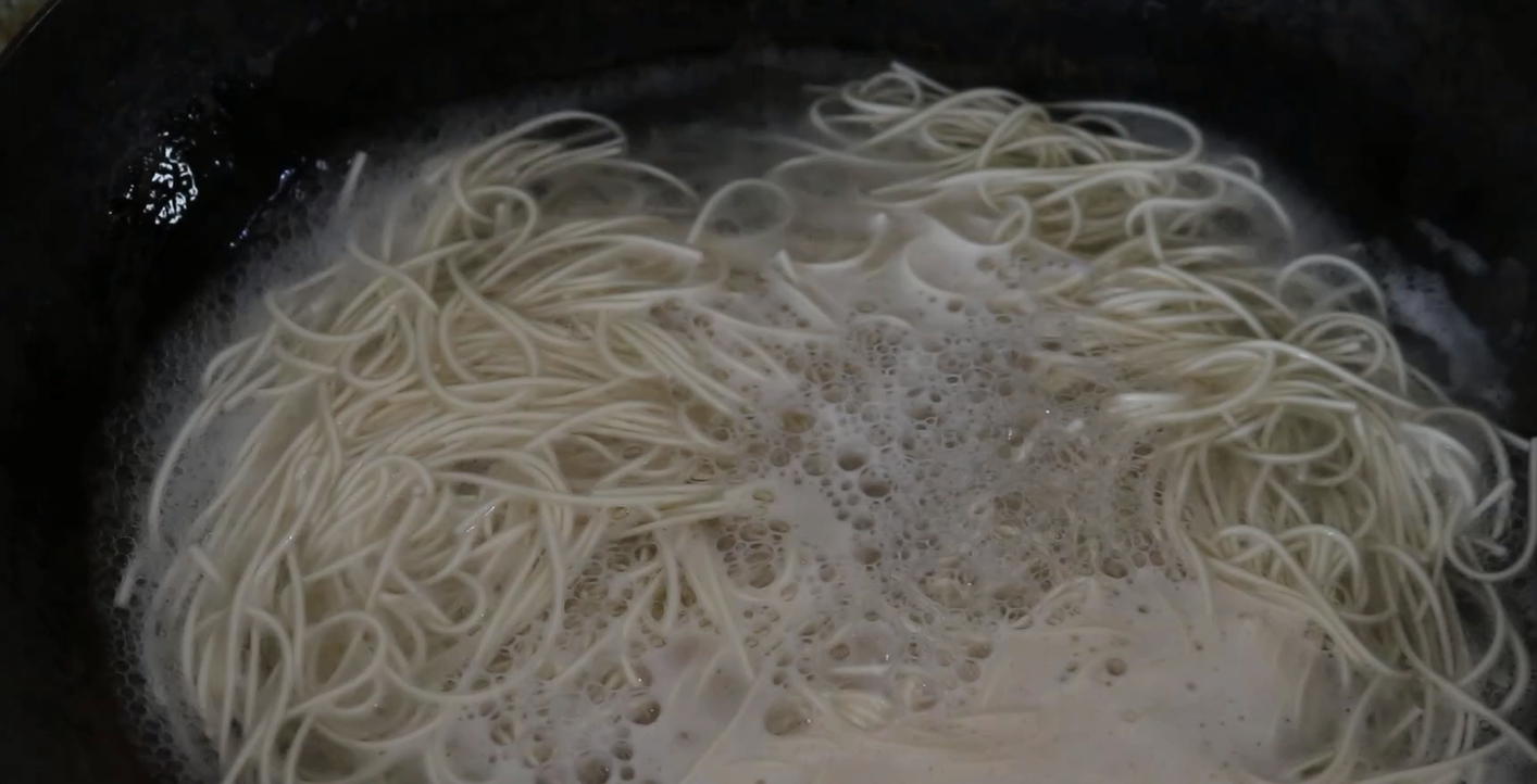 6、接下來(lái)咱們將面條放到開水中煮熟,加入面條,并將鍋中的水煮開之后倒入一遍涼水,這樣煮出來(lái)的面條更加爽滑更加筋道,再一次煮開之后澆入涼水,這個(gè)面條只需要煮到八成熟,太軟口感就不好了,再一次煮開之后再將面條出鍋裝入到調(diào)料碗中,再撒上蔥花點(diǎn)綴一下,一碗美味的陽(yáng)春面就做好了,你喜不喜歡呢?