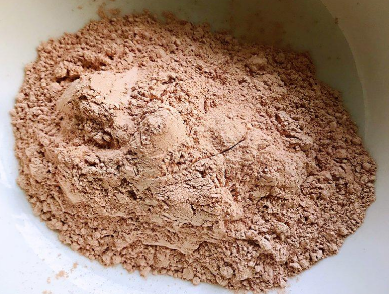 紅茶水降溫后,我們用它來和皮蛋粉,皮蛋粉含有石灰成分,有很強的腐蝕性,所以我們不要用手攪拌,用勺子攪拌成泥狀