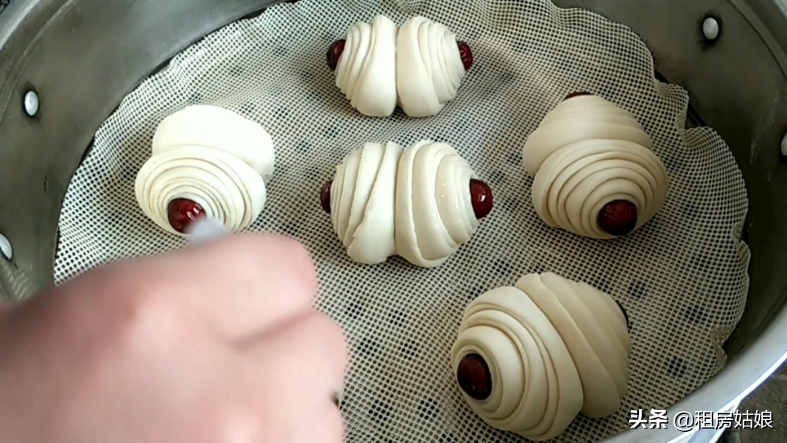 4、全部做好以后,擺入籠屜中,放入溫水鍋中進行醒發。醒發至體積是原來的1.5倍大,用手拿起來感覺輕飄飄就可以開火了。水開后蒸15分鐘,燜5分鐘再打開鍋蓋。