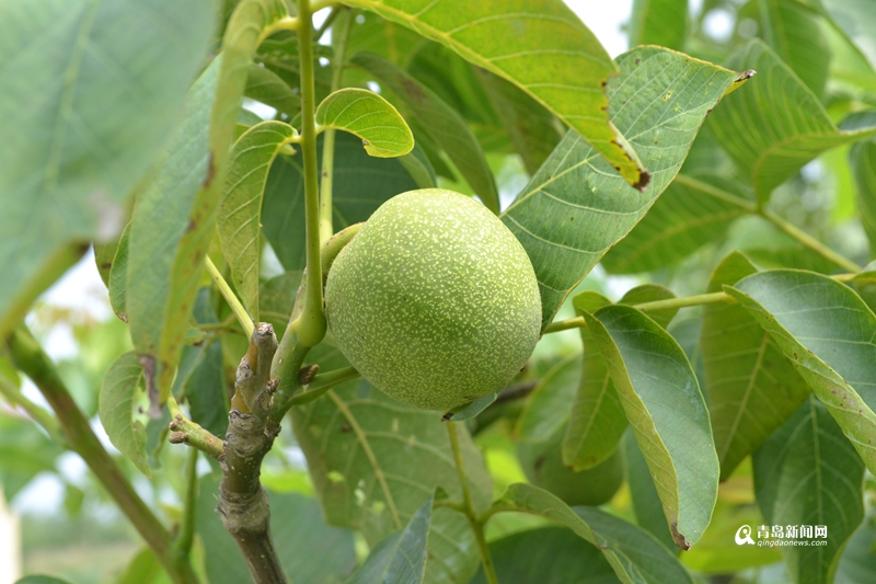 盛夏時節,山東膠州鋪集鎮高家莊村千畝核桃園內碩果累累,綠色的核桃掛滿了枝頭。據了解,經過八年多的建設,該核桃園已經成為青島地區規模最大的核桃產地。